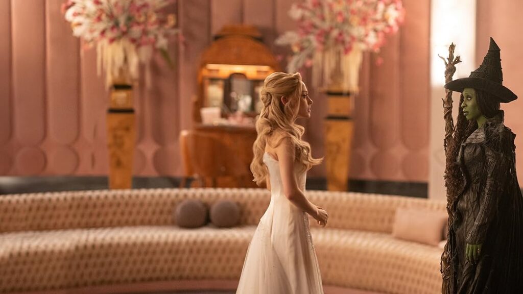 Fora isso, achei os números musicais e os demais personagens esquecíveis, nunca ruins, mas bem abaixo do que puderam entregar na primeira metade de Wicked, isso me decepcionou um pouco, apesar de estar dentro do esperado. Mas deixa eu falar um pouco do que se mantém no mesmo nível: a fotografia, os cenários e figurinos seguem ótimos, assim como nossas protagonistas, que certamente também serão eternizadas como Glinda e Elphaba.